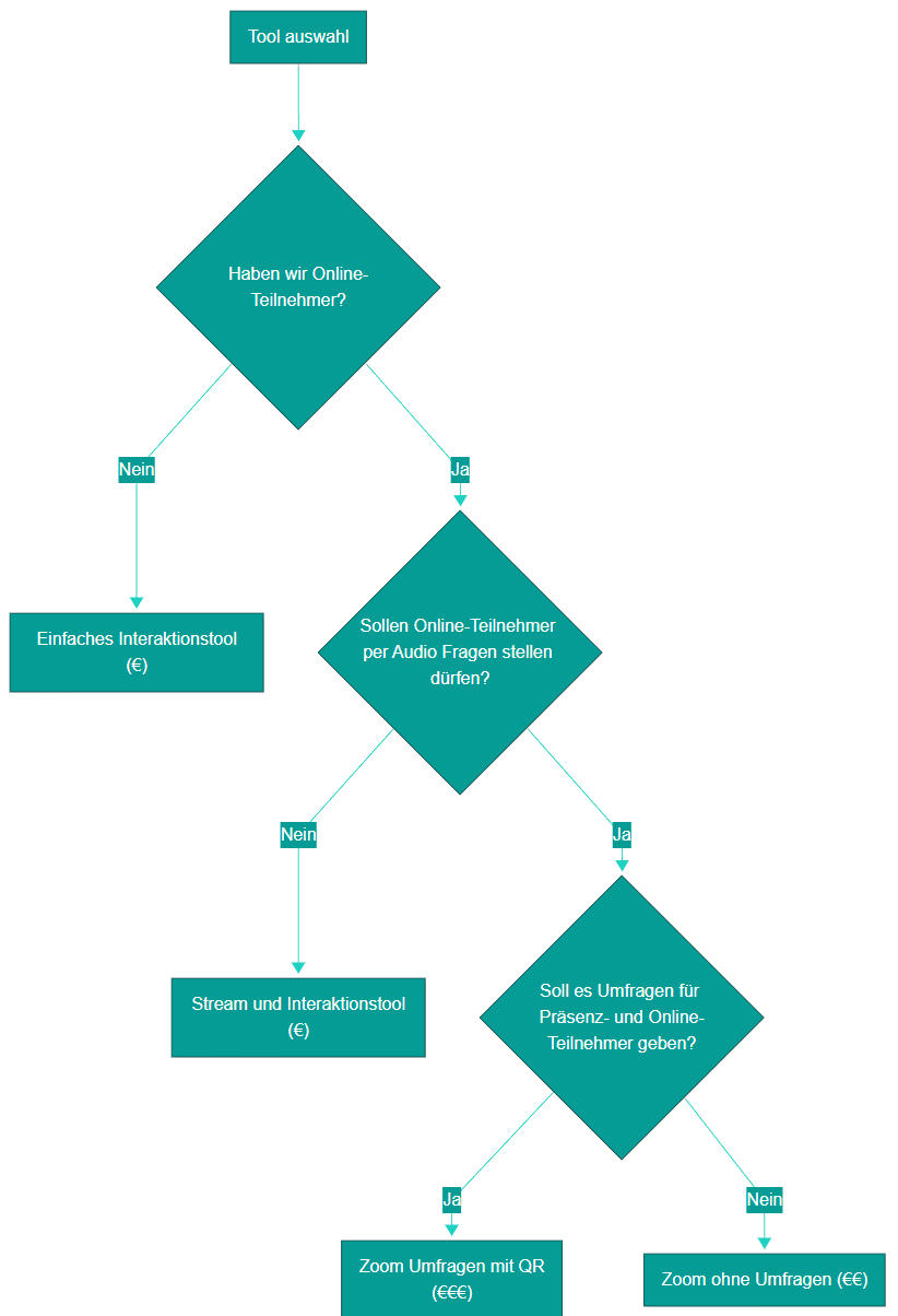 Daher ist es wichtig, die Fixkosten nicht unnötig in die Höhe zu treiben. Die Aufgabe des Organisators ist es, abzuwägen, welche Räume der Veranstaltung übertragen werden sollten und welche ein „nice-to-have“ sind.