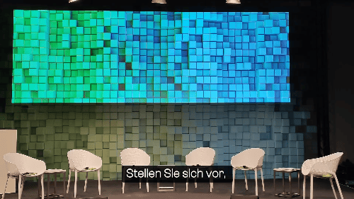 Errichtung einer Doppel-LED-Wand mit Print-Rückwand für ein internes Firmen-Event. Technische Betreuung der Veranstaltung mit Ton & Videoregie.